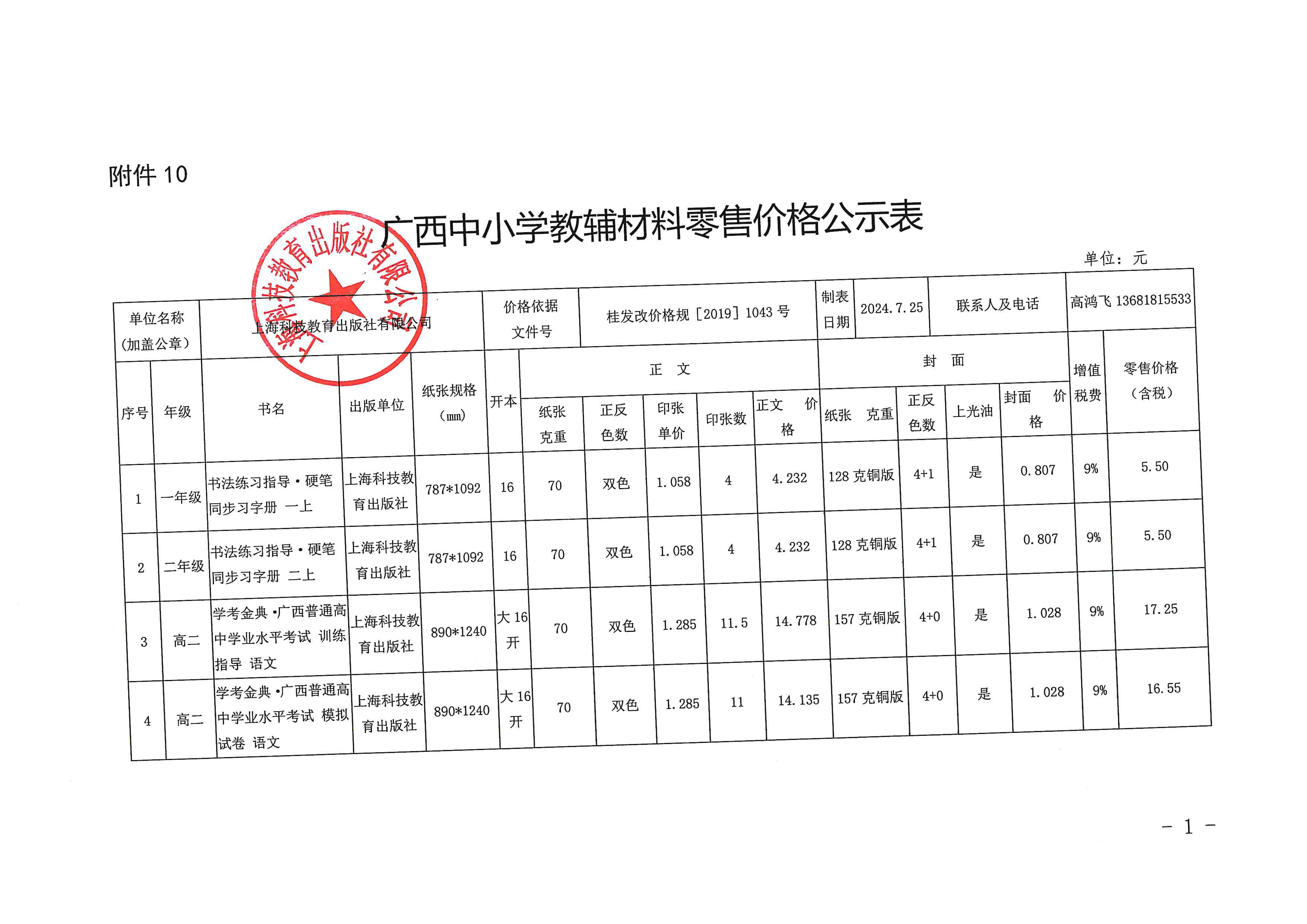 2024秋广西省教辅公示(上海科技教育)
