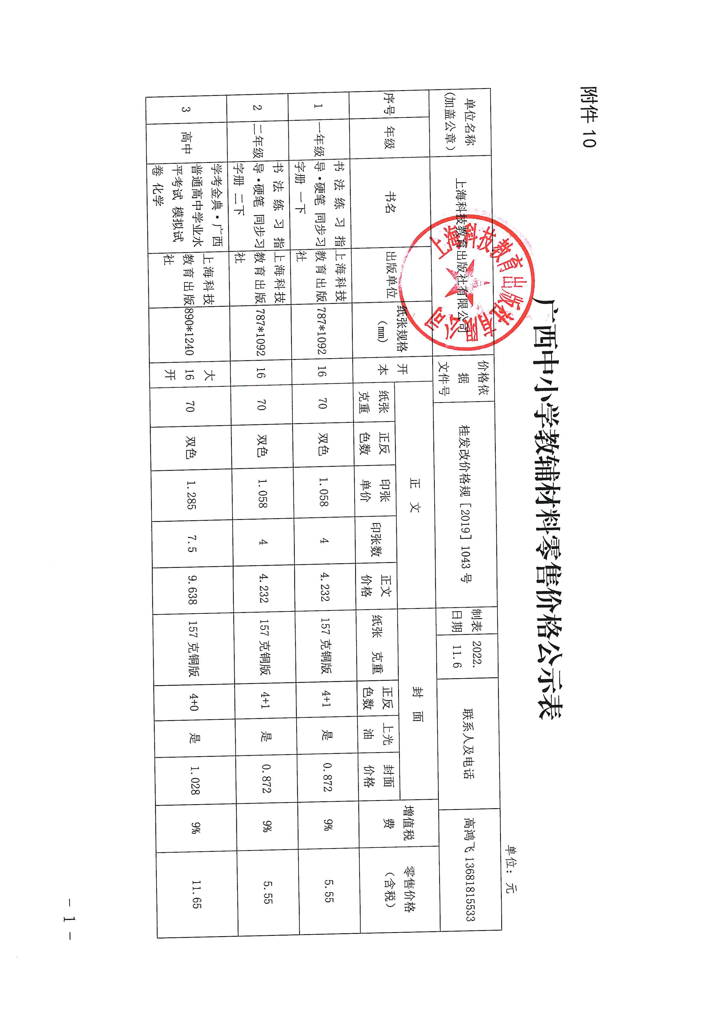 22秋广西省教辅公示(上海科技教育)